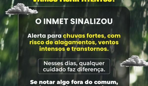 O INMET SINALIZOU QUE ATÉ TERÇA-FEIRA (02) NOSSA REGIÃO PODE REGISTRAR CHUVAS FORTES E VENTOS DE ATÉ 60 KM/ H.